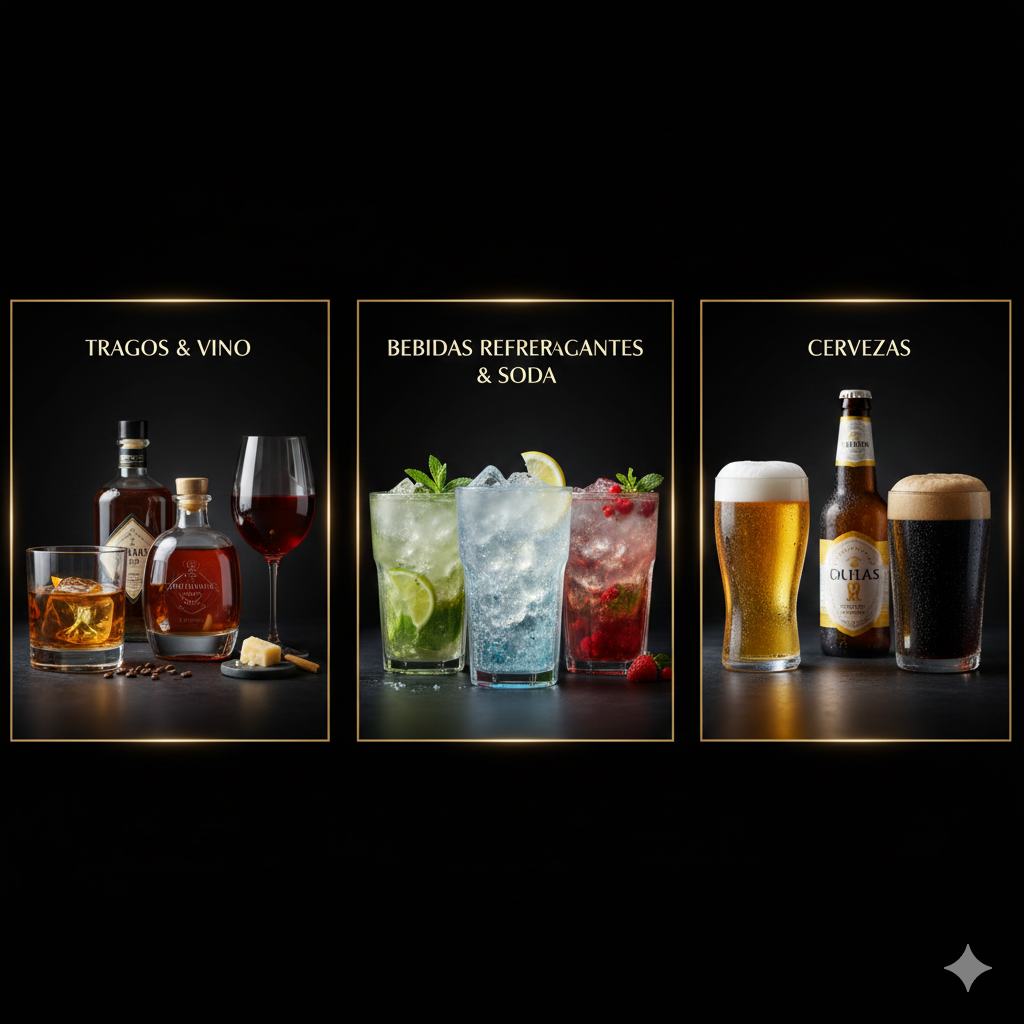Mientras esperas, puedes elegir entre nuestra selección de tragos, bebidas refrescantes o cervezas.